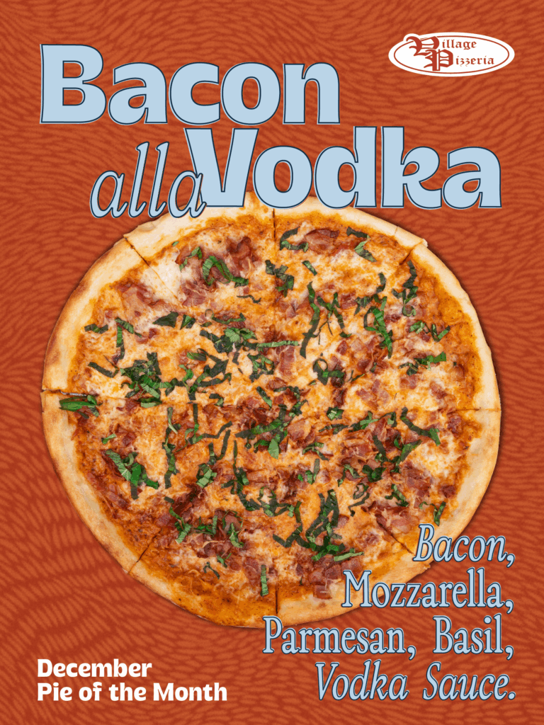 BACON, MOZZARELLA, PARMESAN, BASIL, VODKA SAUCE